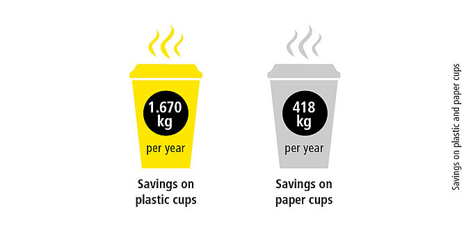 EVVA has banned all plastic mugs from the coffee machines in the headquarters and initially replaced them with paper mugs. Here, too, EVVA continued: Employees were asked to use their own coffee cups on the intranet and via adhesive directly on the vending machine instead of using paper cups. To promote this promotion, all employees received an EVVA-branded copy as a gift that they could personalise themselves. The campaign was a great success. With around 15,000 portions of coffee consumed every month, the savings are impressive: